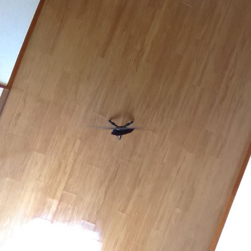 床の状態(確度68%):フローリングは艶があり大きな傷は見当たらない。中央にケーブル類が見える。