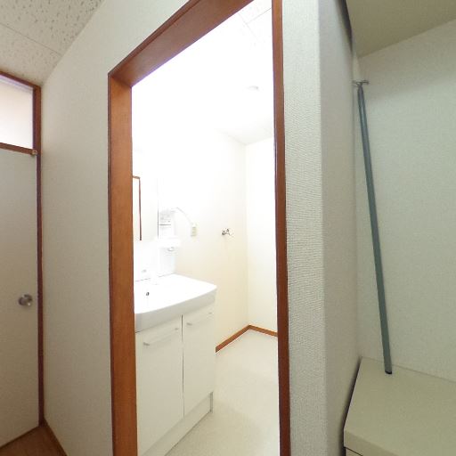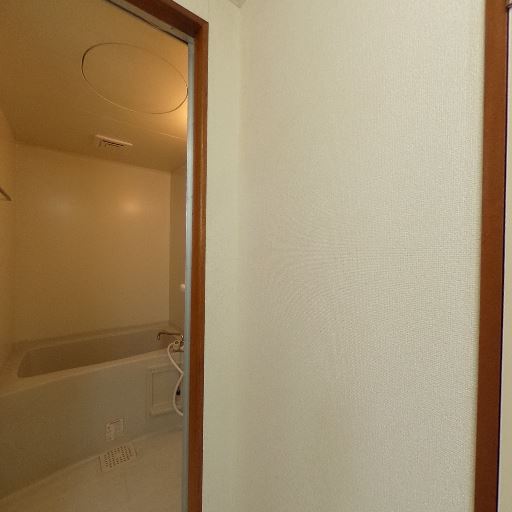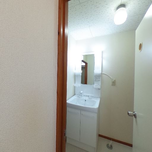 出入口が洗面所に直結(確度72%):浴室ドアの外に洗面台が見える配置。
