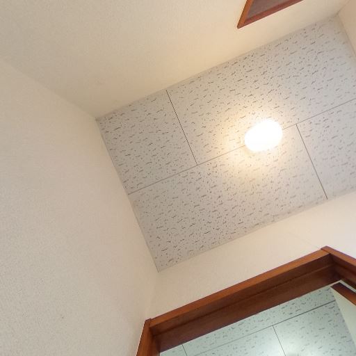 照明と天井仕上げ(確度76%):天井はボード仕上げで中央に丸型照明があり、室内は十分に明るい。