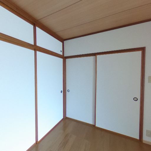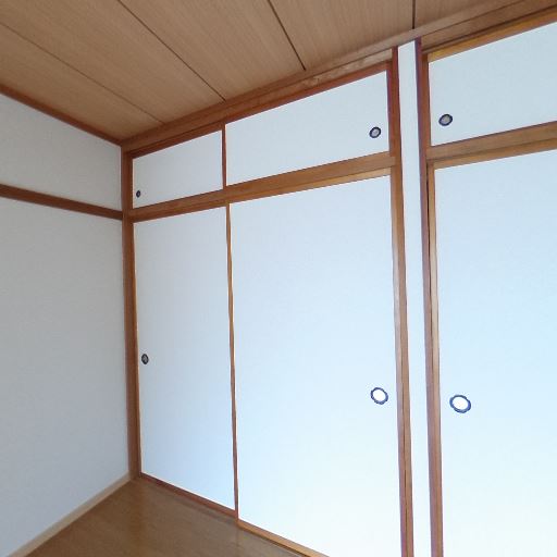 収納の充実(確度83%):壁一面に襖の収納が複数あり、上段収納も備わっている。