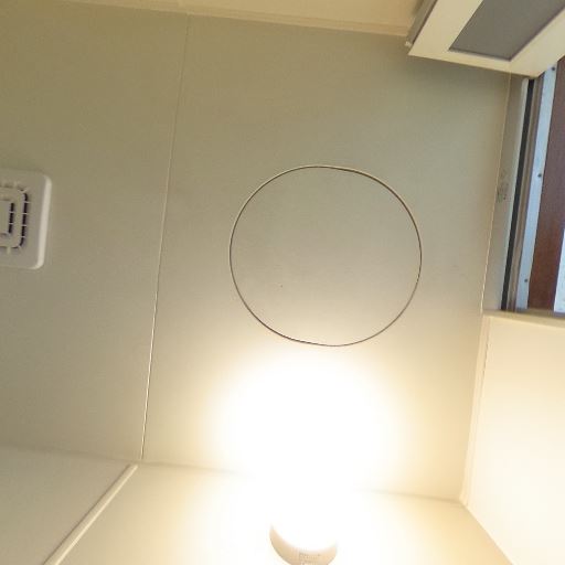 洗濯機置き場の給水栓(確度78%):壁面に単水栓があり、洗濯機置き場が想定される。