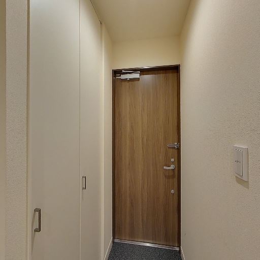 • 玄関まわりの収納がある(確度89%):玄関脇に縦長の収納扉が見え、靴や日用品をしまえるスペースが確保されている可能性が高い。