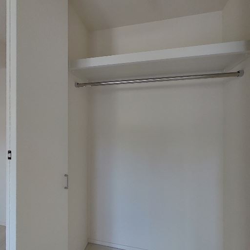 • クローゼット収納が備わっている(確度95%):front画像から、ハンガーパイプと上部棚のあるオープンクローゼットが確認でき、衣類や小物を分けて収納しやすい構成に見える。