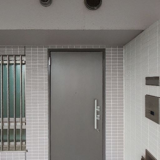 • 窓に面格子があり防犯面に配慮(確度90%):玄関横の窓に縦格子が設置されており、外部廊下に面した開口部として最低限の防犯対策が見て取れる。