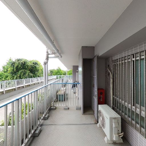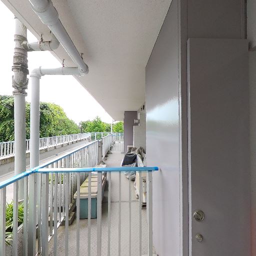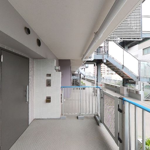 • 外部に開けていて明るい(確度87%):手すり越しに外部空間が広がっており、共用部は日中かなり明るい印象を受ける。
