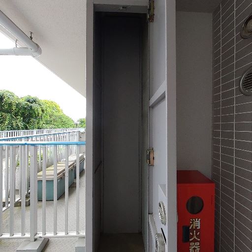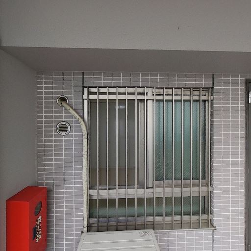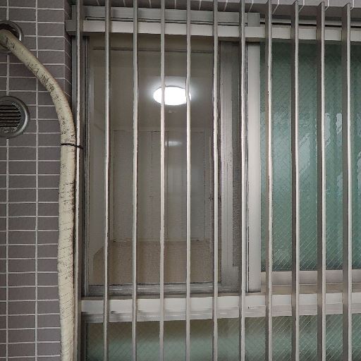 • 窓・開口部に面格子があり防犯面で安心感(確度89%):開口部の外側に縦格子が設けられており、共用廊下側に面した窓としては防犯性に配慮されているように見える。