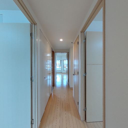 • 廊下から居室まで抜け感があり明るい(確度86%):廊下の先に大きめの開口と窓が見えており、奥から自然光が入っているように見える。閉塞感は比較的少ない。