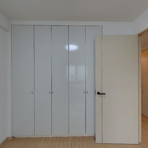 • 収納量が多い(確度93%):壁一面に複数枚の扉があるクローゼット収納が設けられており、衣類や日用品をまとめて収納しやすそうである。