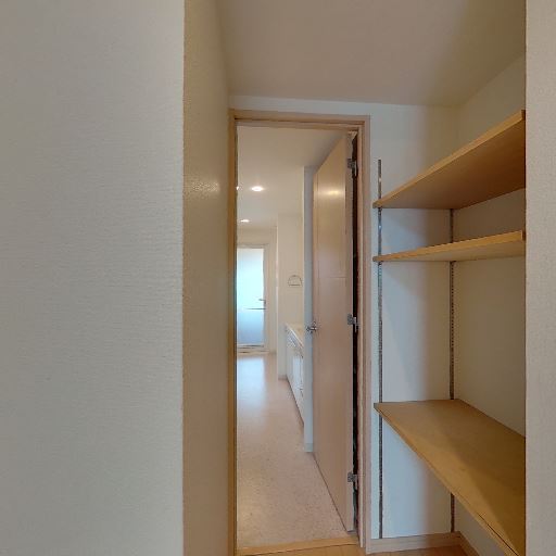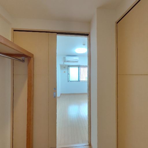 • 玄関付近に追加収納がありそう(確度81%):玄関方向の廊下脇に収納扉が開いており、居室以外にも収納スペースが確保されているように見える。