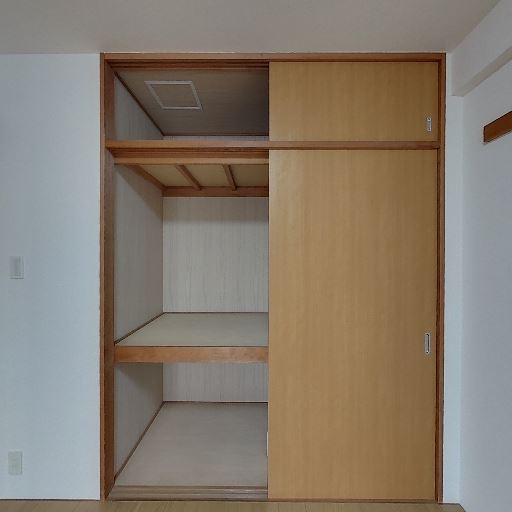 • 収納が大きく使いやすそう(確度94%):壁面に造り付けの押入れ・収納があり、上下2段で奥行きもあるように見える。開口部が広く、寝具や季節物、日用品をまとめて収納しやすい構成。