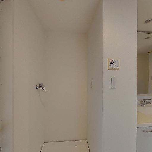 • 洗濯機置き場が室内にある(確度96%):給水栓と防水パンが確認でき、洗面脱衣所内に洗濯機置き場が設けられている。