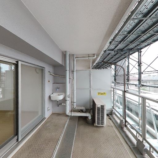 • バルコニーにスロップシンクがある(確度95%):壁際に小型のシンクが設置されている。掃除、植物の水やり、汚れ物の予洗いなどに便利な設備。