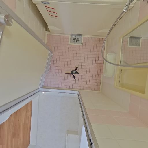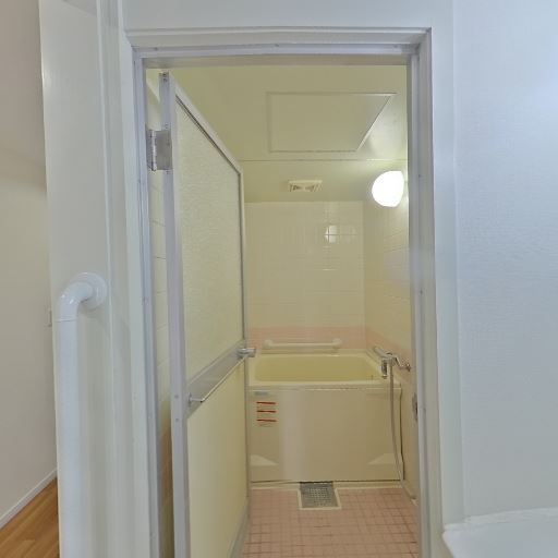 • 浴室が近接(確度90%):洗面所の隣に浴室があり、引き戸の先に浴槽と換気口、照明が確認できる。