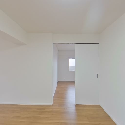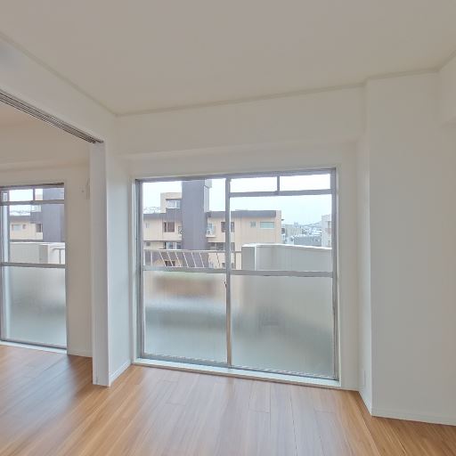 • 採光と眺望(確度86%):大きな掃き出し窓と腰高窓があり、室内に均一に自然光が入っている。向かいの建物との距離は近めだが、上部は抜けていて空が見える。