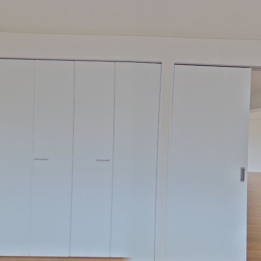 • 収納の充実(確度82%):壁一面のクローゼット扉が確認でき、収納量が確保されている。