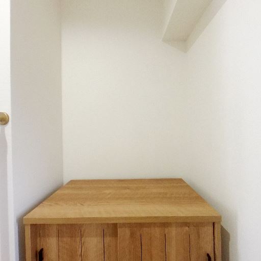 • 玄関収納の存在(確度86%):木製の下駄箱があり、天板もフラットで荷物の一時置きに使えそう。