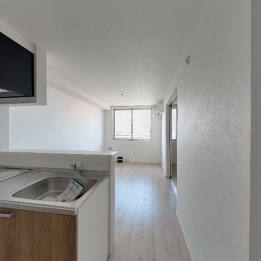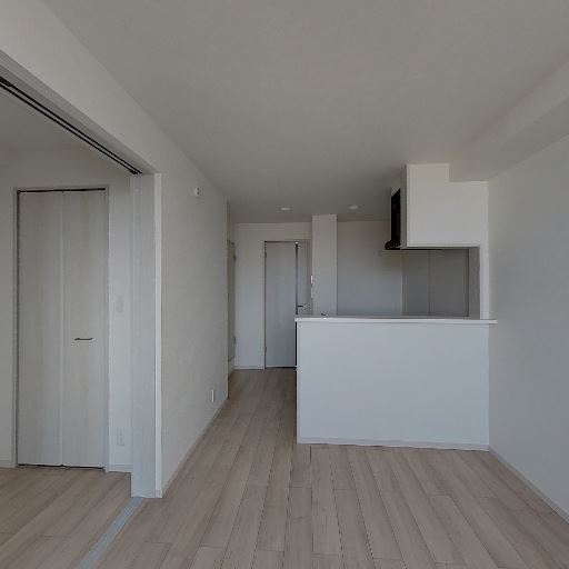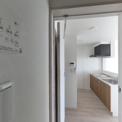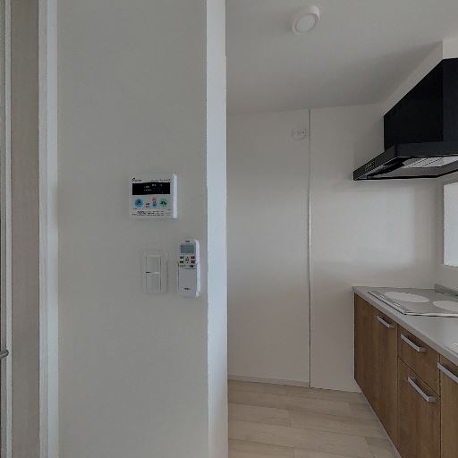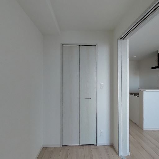 明るめの内装で清潔感がある(確度88%):壁紙と床材が白〜淡い木目で統一されており、全体として明るくすっきりした印象を受ける。目立つ大きな汚れや傷も画像上では確認しにくい。