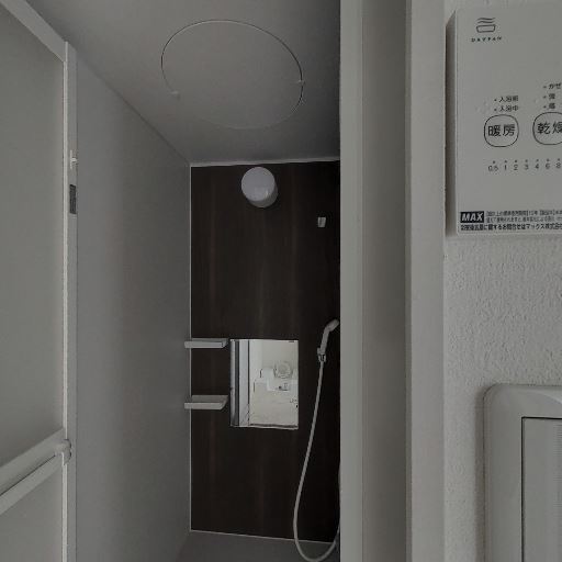 浴室乾燥機がありそう(確度91%):壁面リモコンに「暖房」「乾燥」などの表記が確認でき、浴室乾燥機能付き設備が備わっている可能性が高い。