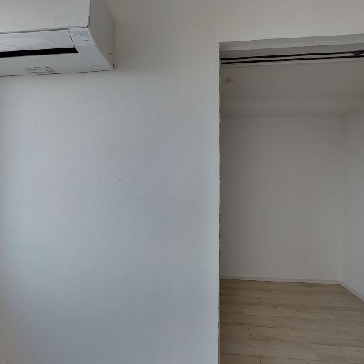 隣接空間があり居室を分けて使えそう(確度75%):右画像に開口部があり、隣接するスペースが見える。寝室や収納寄りの空間として使い分けできる可能性がある。