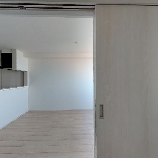 隣接空間とつながっていて動線は良さそう(確度83%):左側画像では引き戸越しにリビング・キッチンらしき空間が見えており、個室と共用空間の行き来がしやすい配置に見える。