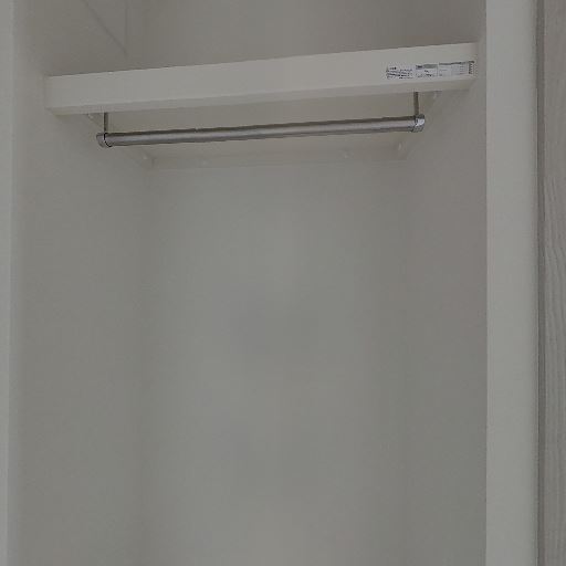 ウォークインクローゼット風の収納スペース(確度94%):周囲の壁面にハンガーパイプと上部棚が設けられており、衣類をまとめて収納できる独立した収納空間と見られる。