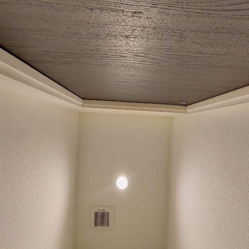 • 換気設備の有無(確度86%):天井に換気口があり、照明もダウンライトで設置されている。