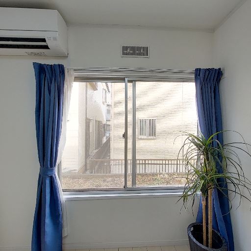 • 採光・窓のサイズ(確度82%):大きめの腰高窓があり、室内が明るく見える。カーテンレールとカーテンが設置済み。